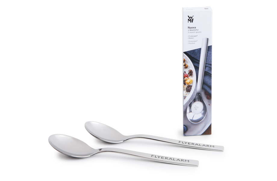 Das führt direkt zum nächsten Grund, Alltagsgegenstände von WMF gravieren zu lassen: Durch den hohen Alltagsnutzen werden die WMF-Werbeartikel ständig gebraucht. Und durch die hohe Qualität halten sie das auch aus! Ob Edelstahl-Vakuum-Trinkflaschen für unterwegs, Profi-Pizzaschneider für gesellige Abende oder allmorgendlich benutzte Müslilöffel – WMF-Produkte bestehen aus Cromargan® Edelstahl.