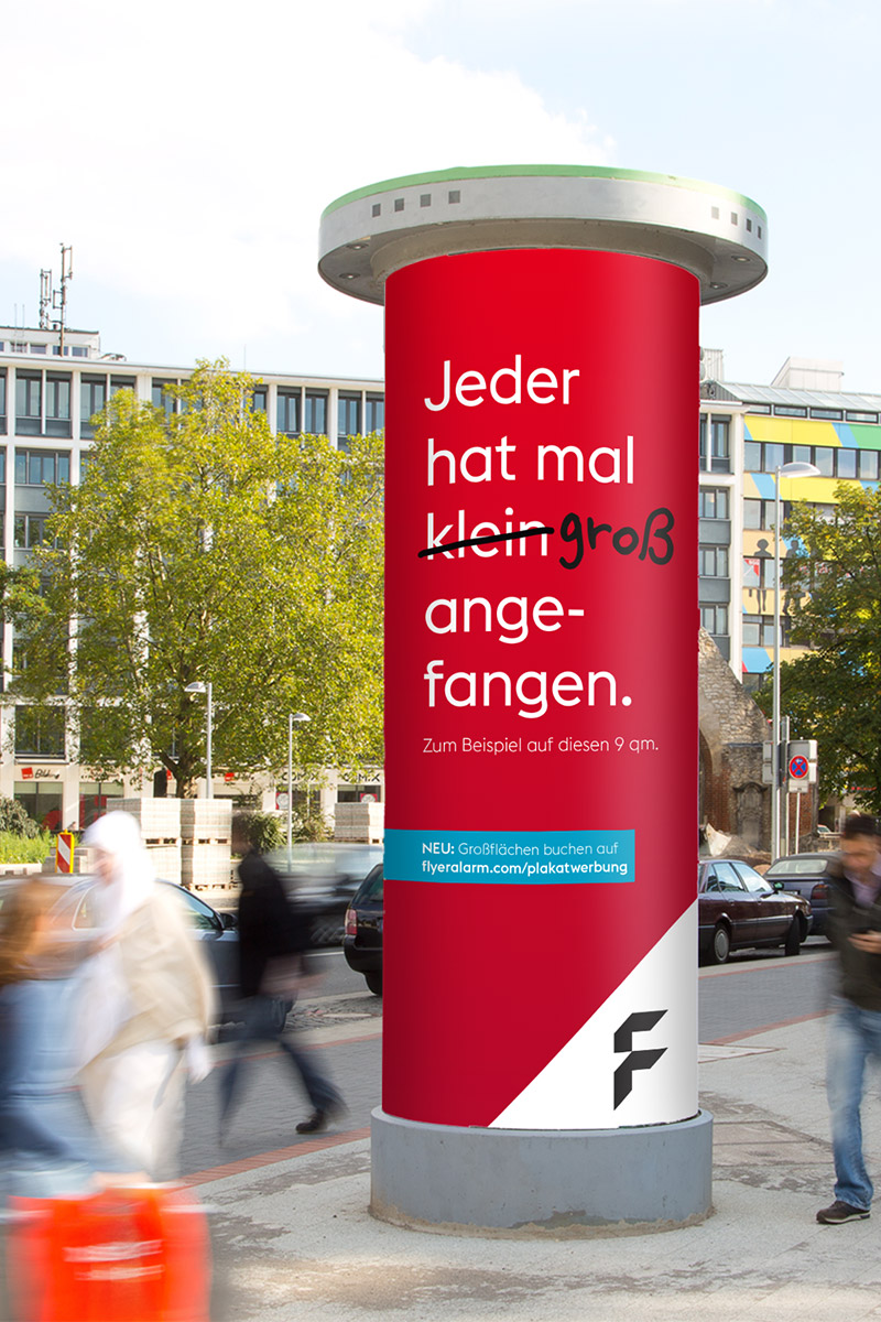 Mit klassischer Außenwerbung lassen sich Werbebotschaften speziell für lokale Zielgruppen hervorragend streuen. Und ganz besonders gut funktioniert das natürlich im XXL-Format auf Großflächen – die können Sie jetzt direkt über FLYERALARM gestalten und buchen. Einfach das Wunschmedium der Out-of-Home-Werbung wählen, Druckdaten erstellen (lassen), Ort und Zeitraum wählen und bestellen – fertig.