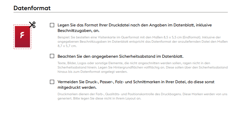 Wichtig ist zuallererst, dass Sie Ihr Dokument im richtigen Format anlegen. Logisch. Bedenken Sie dabei jedoch die Beschnittzugaben und Sicherheitsabstände. Bei FLYERALARM werden Druckprodukte im ressourcenschonenden und kosteneffizienten Sammeldruckverfahren hergestellt. Das heißt, viele Aufträge mit gleicher Grammatur werden auf einem großen Druckbogen platziert und gedruckt. Anschließend werden die einzelnen Layouts ausgeschnitten. Für diesen Arbeitsschritt ist eine Beschnittzugabe zum eigentlichen Druckformat nötig. Mehr zur Produktion von Druckprodukten erfahren Sie im Blogbeitrag über den Druck von Flyern.