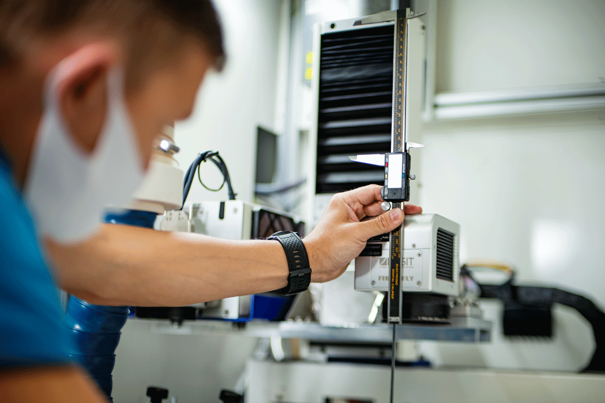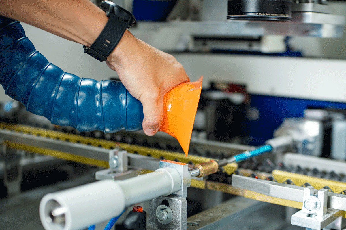 Jetzt geht’s los: Absauger ausrichten und ein erster Probedurchlauf wird gestartet, bei dem die Einstellungen und Laser-Parameter überprüft werden. Ein gleißender Lichtpunkt fährt mit leisen Zisch-Geräuschen die zuvor berechneten Linien mehrmals ab. Material verdampft und wird direkt abgesaugt. In Sekundenbruchteilen ist der Lichtzauber vorbei.
