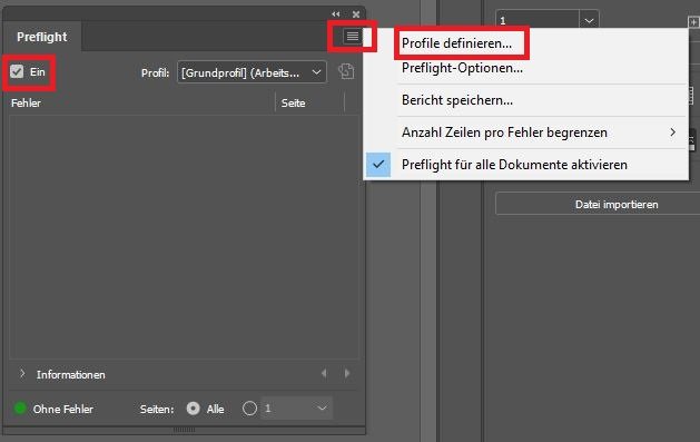 Weitere Einstellungen im Preflight von InDesign