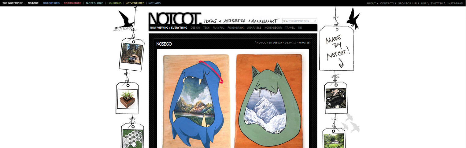 Für alle, die gerne mal über den Tellerrand hinausschauen, ist NOTCOT eine wahre Goldgrube. Hier versammeln sich Design-Ideen aus allen möglichen Richtungen und Sparten. Nicht umsonst rühmt sich die Seite damit, eine Plattform für Trendsetter zu sein. Schwerpunkte liegen dabei unter anderem auf Verpackungen, Bekleidung sowie Merchandising und Give-aways.