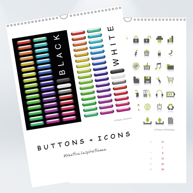 Der Buttons + Icons Kalender ist im Calvendo-Verlag erschienen, in verschiedenen Größen erhältlich und kostet zwischen 19,90 Euro (DIN A4) und 49,90 Euro (DIN A2).