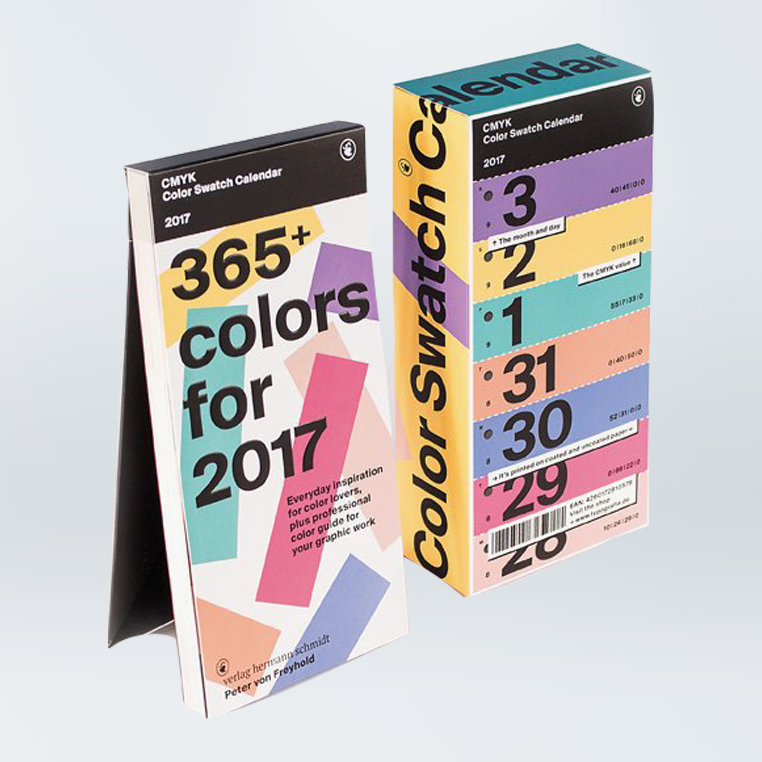 Der C|M|Y|K Color Swatch Kalender ist im Hermann-Schmidt-Verlag erschienen und kostet 39,80 Euro.