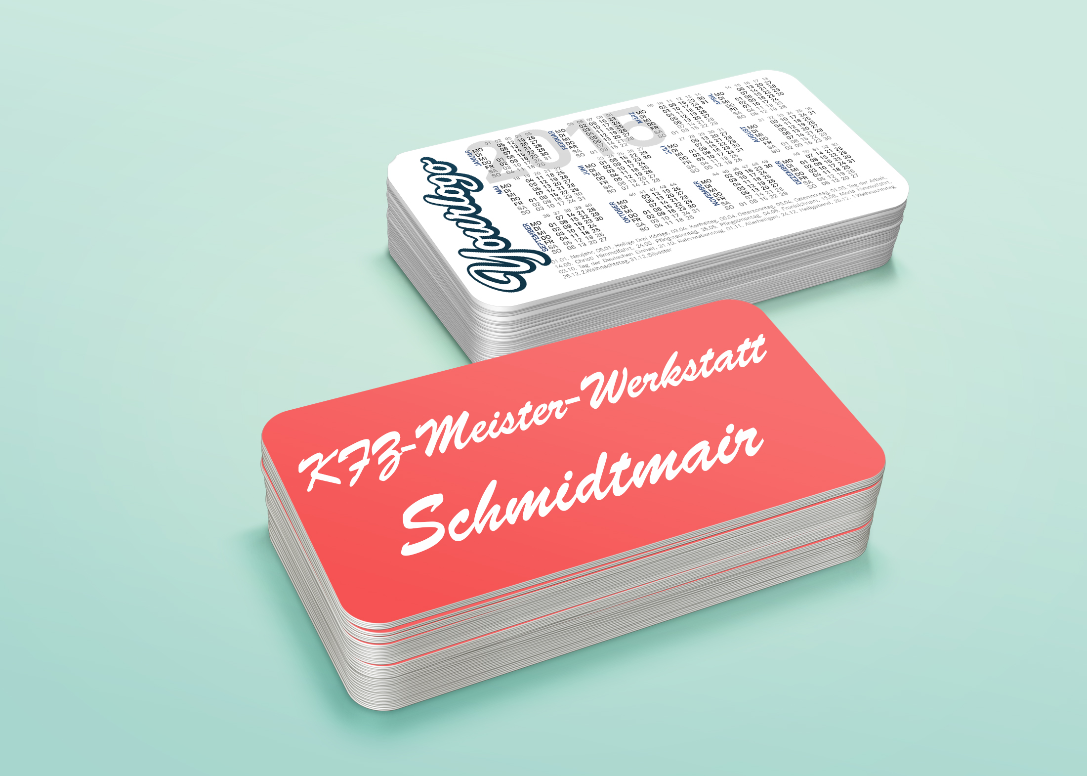 Die Kundenbindung ist mindestens so wichtig wie die Kundengewinnung. Immer beliebt sind hier Bonusprogramme, mit denen es eine Vergünstigung oder etwas gratis gibt. Meist ab einem bestimmten Wert oder einer bestimmten Anzahl von Besuchen. Hat Ihre Karte einen praktischen Nutzen, wird sie so schnell nicht mehr aus der Hand gegeben. Dazu zählen zum Beispiel auch Kalender und Erinnerungskärtchen für Patienten, Klienten und Kunden.