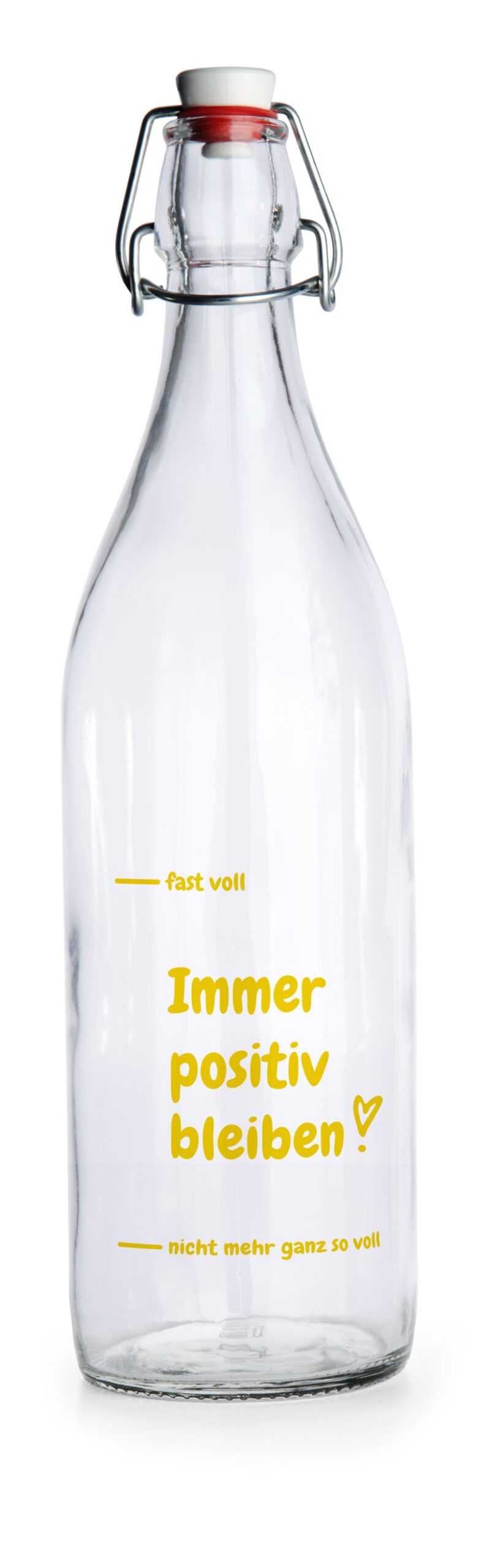 Retro-Artikel sind gerade richtig angesagt. Kein Wunder, dass die Glasflasche mit Bügelverschluss wieder eine Renaissance erlebt. Im Jahr 1875 hatten Tüftler diese clevere Idee, von der Sie heute noch profitieren! Dank des sicheren Bügelverschlusses läuft die Glasflasche nicht aus und kann problemlos überall mithingenommen werden. Mit einem hübschen Layout gestaltet, in dem Sie ihr Firmenclaim clever platzieren, entwickelt sich der umweltbewusste Hingucker zudem noch zum stylishen Deko-Objekt.