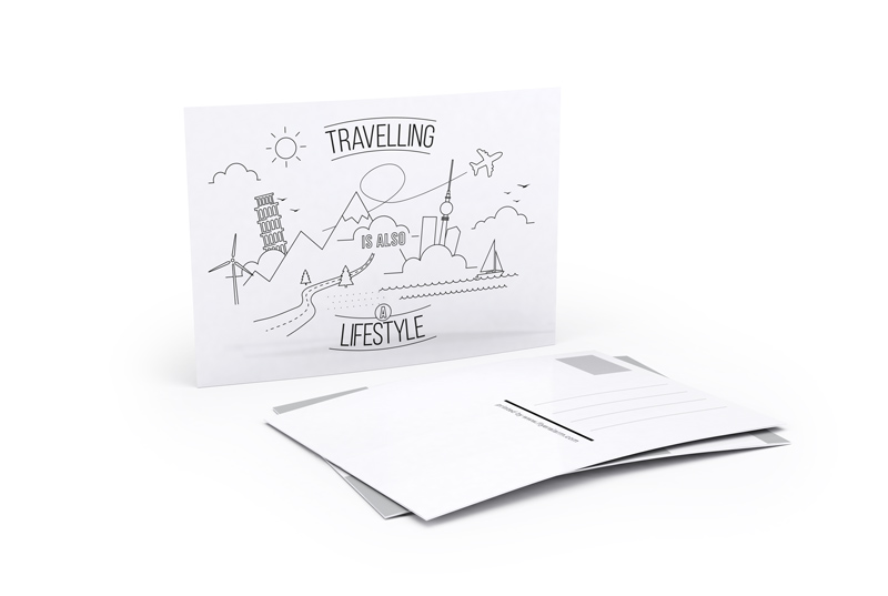 Layout für Postkarten (DIN A6 quer) aus 400 g Bilderdruck matt.