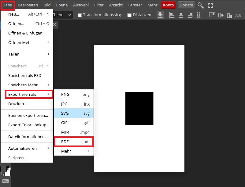 Sind Sie mit der kostenlosen online Bildbearbeitung fertig, geht’s ans Exportieren Ihrer Druckdaten. Auch das ist mit Photopea kinderleicht.