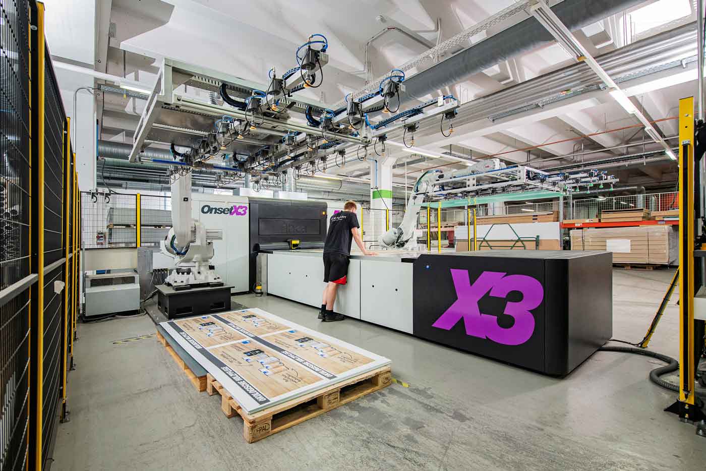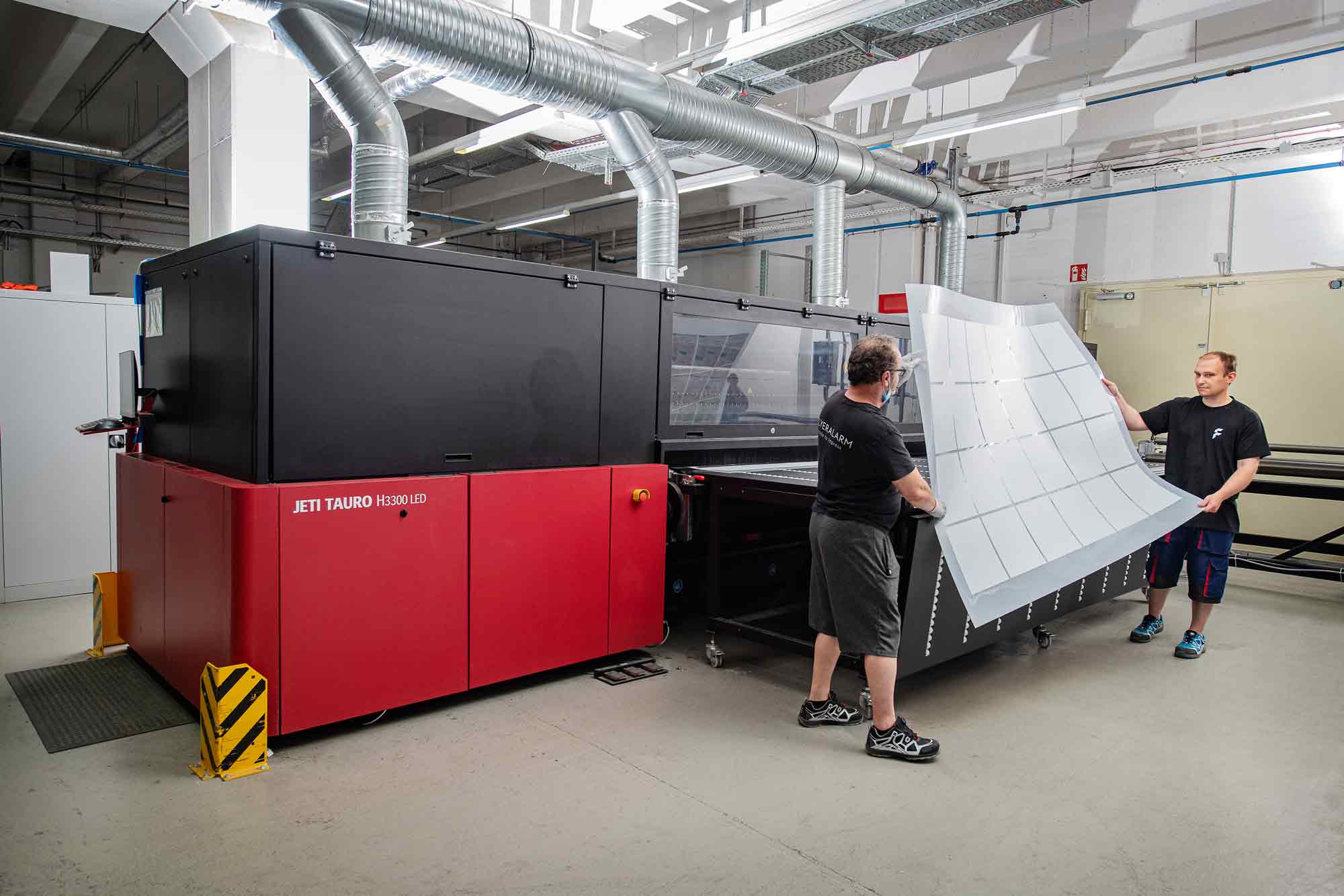 – Klebefolie wird bedruckt und auf Trägerplatte kaschiert