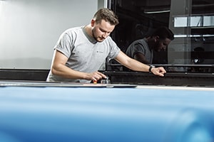 Die EFI VUTEk ® HS100 Pro ist im High-End Bereich angesiedelt. Die Maschine druckt mit einer Druckauflösung von bis zu 1000 dpi und mit bis zu acht Farben. Auch ein Weißdruck in verschiedenen Varianten ist möglich. Gedruckt wird bei uns selbstverständlich mit umweltfreundlicher Tinte, die die Maschine übrigens restlos verbraucht, sodass kein Tintenabfall produziert wird. Das Druckbild? Ist einfach nur perfekt. Dank der hohen Druckauflösung und dem Einsatz von variablen Tropfengrößen bestechen die Drucke durch Schärfe und Brillanz. Bei Trocknung mit UV-Licht hat die Oberfläche des Druckes zudem einen seidenmatten Glanz, der einem Offsetdruck sehr nahe kommt.