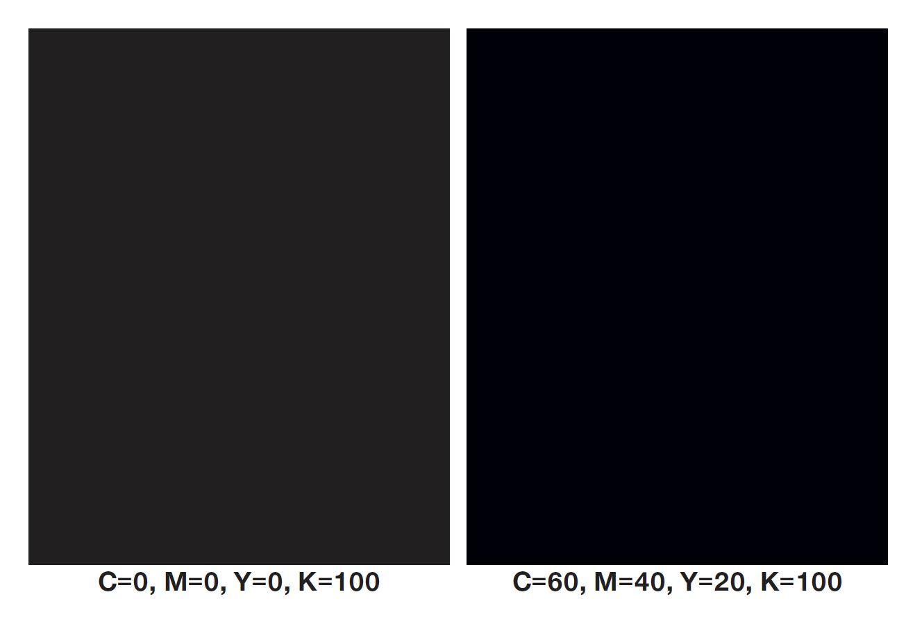 „Fakt ist jedoch, dass ein reines Schwarz, also C=0, M=0, Y=0, K=100, nicht genügend Tiefe, Deckkraft und Sättigung hat, um vor allem größere Elemente in einem kräftigen Schwarz erstrahlen zu lassen“