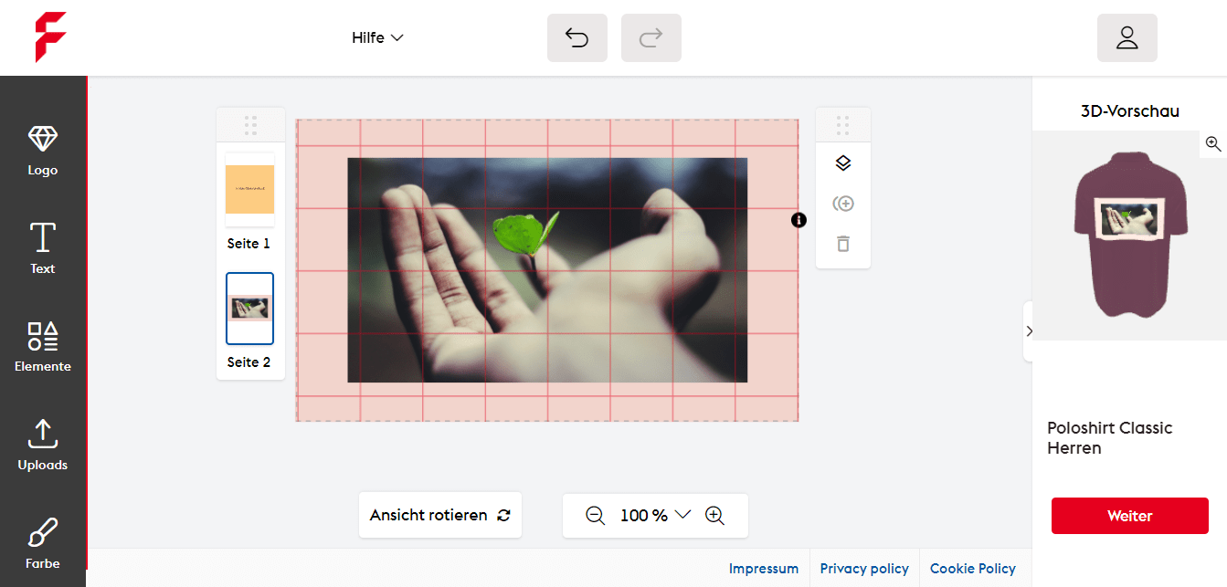 Sind Sie mit der Vorderseite Ihrer T-Shirts zufrieden? Dann klicken Sie einfach auf Seite 2 und gestalten nun auch den Rücken.