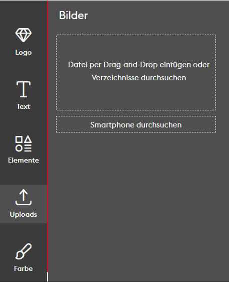 Ihnen schwebt bereits ein bestimmtes Motiv vor oder Sie haben ein fertiges Foto, das Sie auf Ihre T-Shirts platzieren möchten? Im Upload-Bereich können Sie Ihre Bilder, Grafiken oder Layouts als JPEG, TIF oder PNG einfach per Drag-and-drop vom PC in den T-Shirt-Creator laden. Sollte sich Ihr Wunschmotiv auf Ihrem Smartphone befinden, klicken Sie auf „Smartphone durchsuchen“, scannen Sie den angezeigten QR-Code ein und laden Sie Ihre liebsten Bilder direkt vom Handy in das Online-Tool.