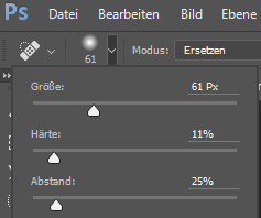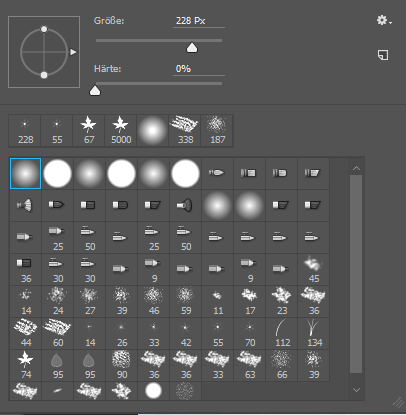 Schritt 2: Wählen Sie den Kopierstempel aus. In der Optionsleiste oben links oder per Rechtsklick können Sie die Größe und Härte des Pinsels festlegen. Wie bei jedem anderen Pinselwerkzeug gibt es auch zahlreiche Schablonen, wie Grashalme, Blätter oder Schneeflocken, mit denen Sie Bildbereiche formgebend kopieren können.