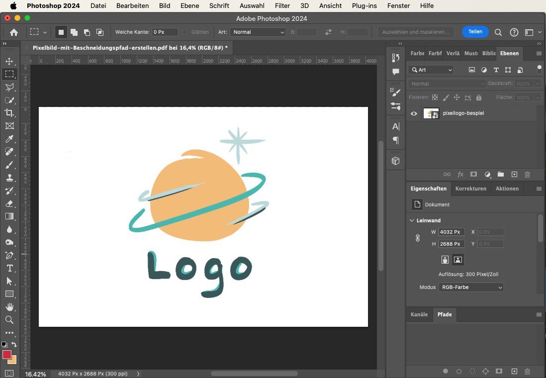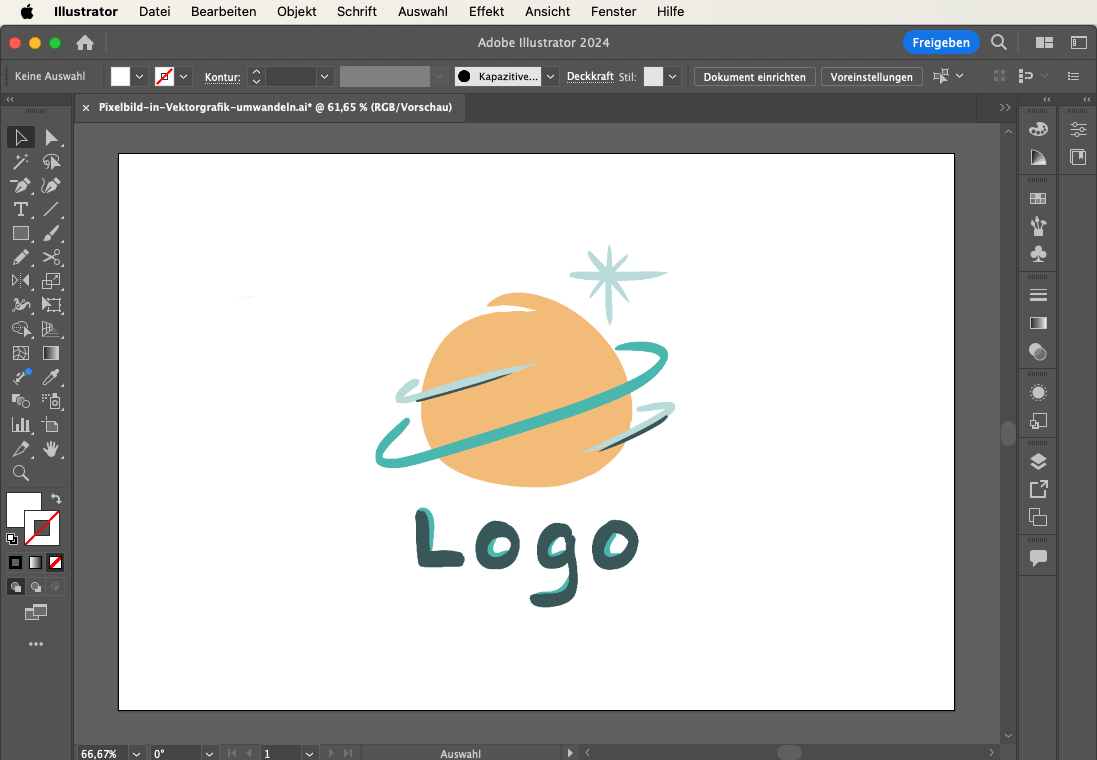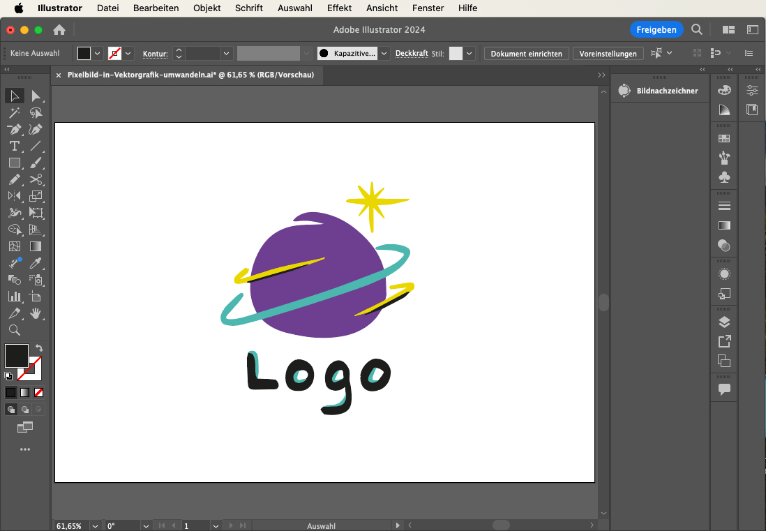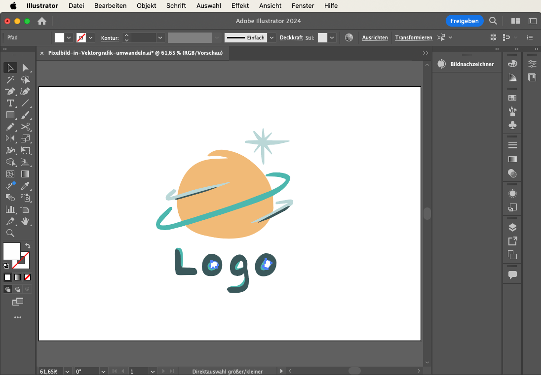 Wenn Sie ein JPG in eine Vektorgrafik umwandeln möchten, ist Adobe Illustrator (oder Affinity Designer) das Programm der Wahl: Hier können Sie echte Vektorgrafiken erzeugen. Beachten Sie jedoch, dass es sehr schwer sein kann, echte Fotos in Vektorgrafiken umzuwandeln. In diesem Beispiel soll ein pixeliges Logo in eine Vektorgrafik umgewandelt werden, sodass es am Ende bedenkenlos skalierbar und damit in jeder Größe druckbar ist.