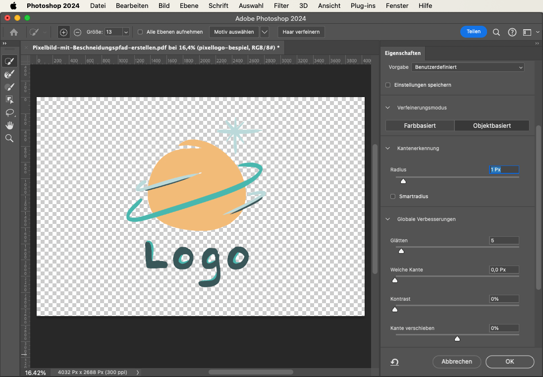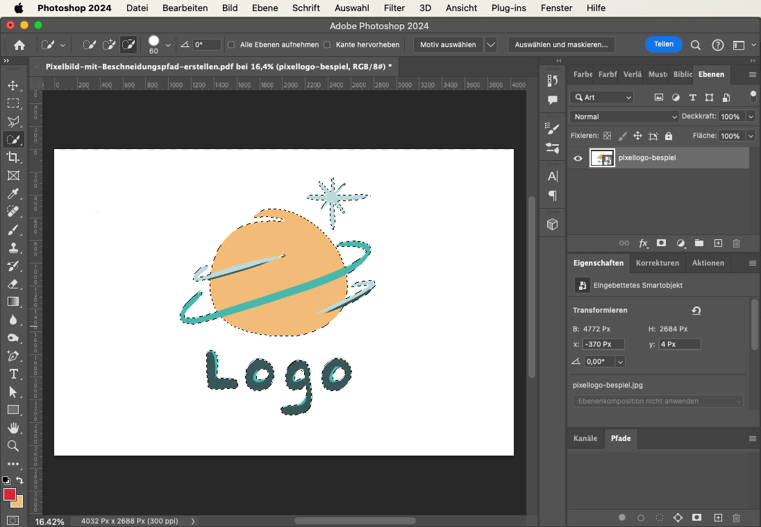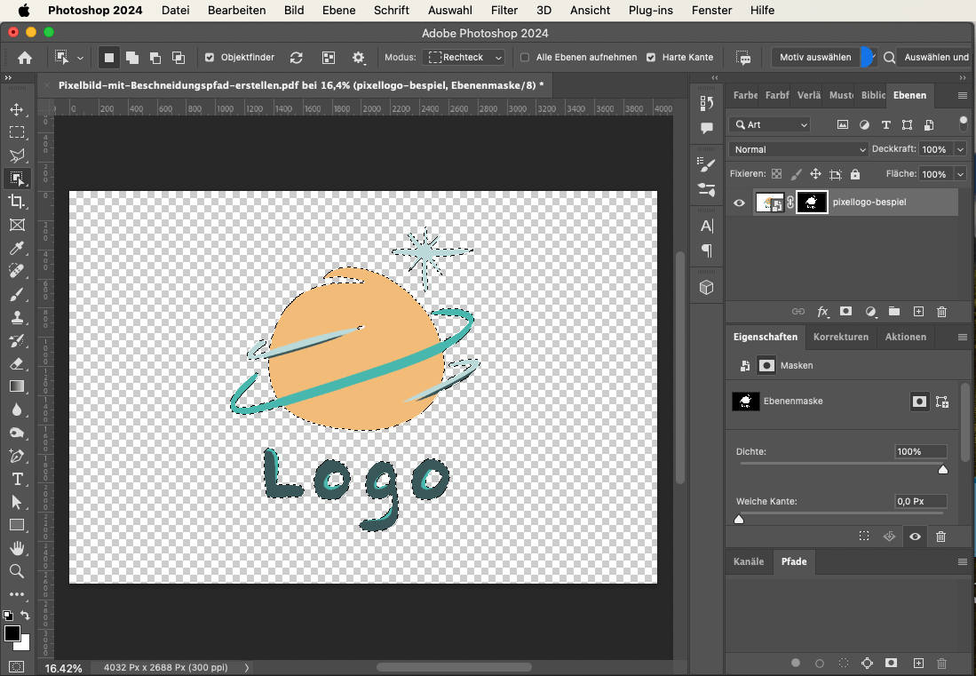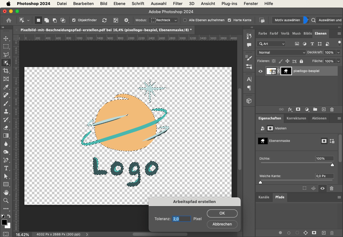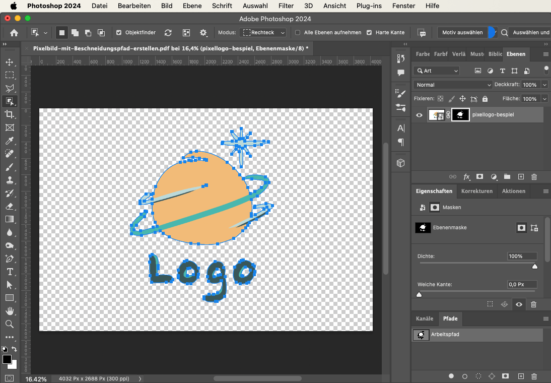 So stellen Sie in Adobe Photoshop ein Pixelbild mit einem Arbeitspfad und der Bildmaske frei: