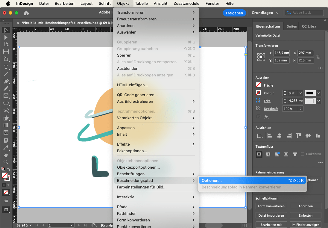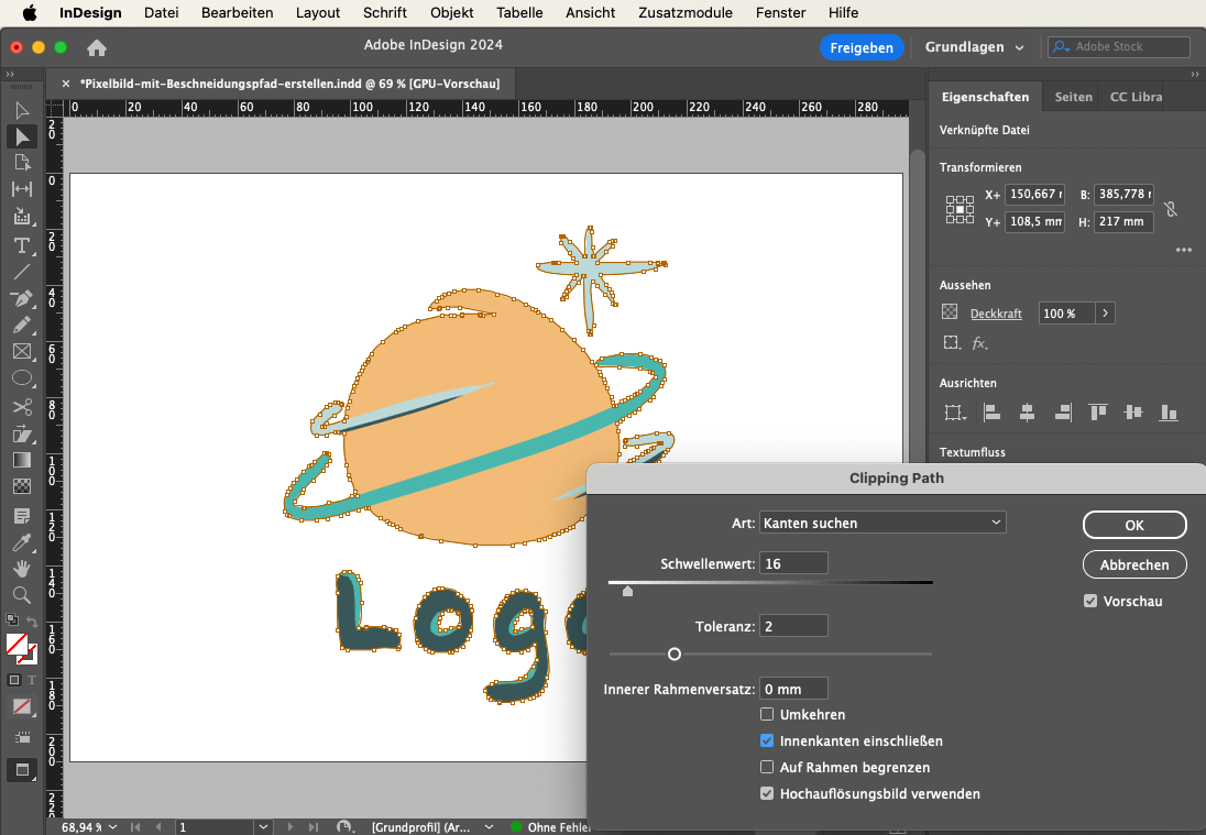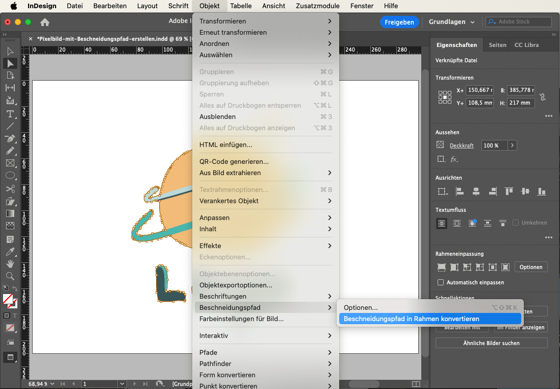 Genau genommen können Sie in InDesign keine Fotos in Vektorgrafiken umwandeln. Sie haben aber die Möglichkeit, ein Pixelbild mit einem Beschneidungspfad freizustellen. Das hilft, wenn Ihre Grafik lediglich eine äußere Kontur benötigt.