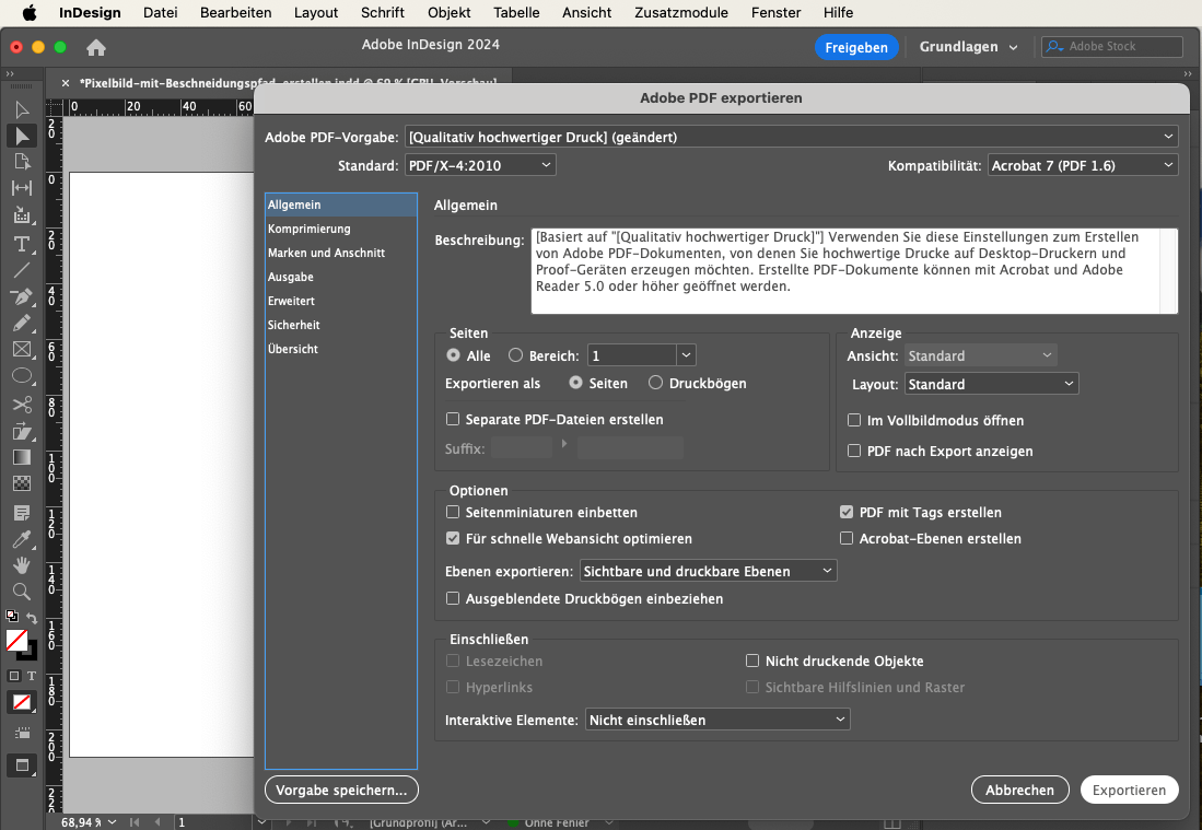 Mehr Details zu diesem Arbeitsschritt finden Sie auch im Tutorial: Druckfähiges PDF mit InDesign erstellen.