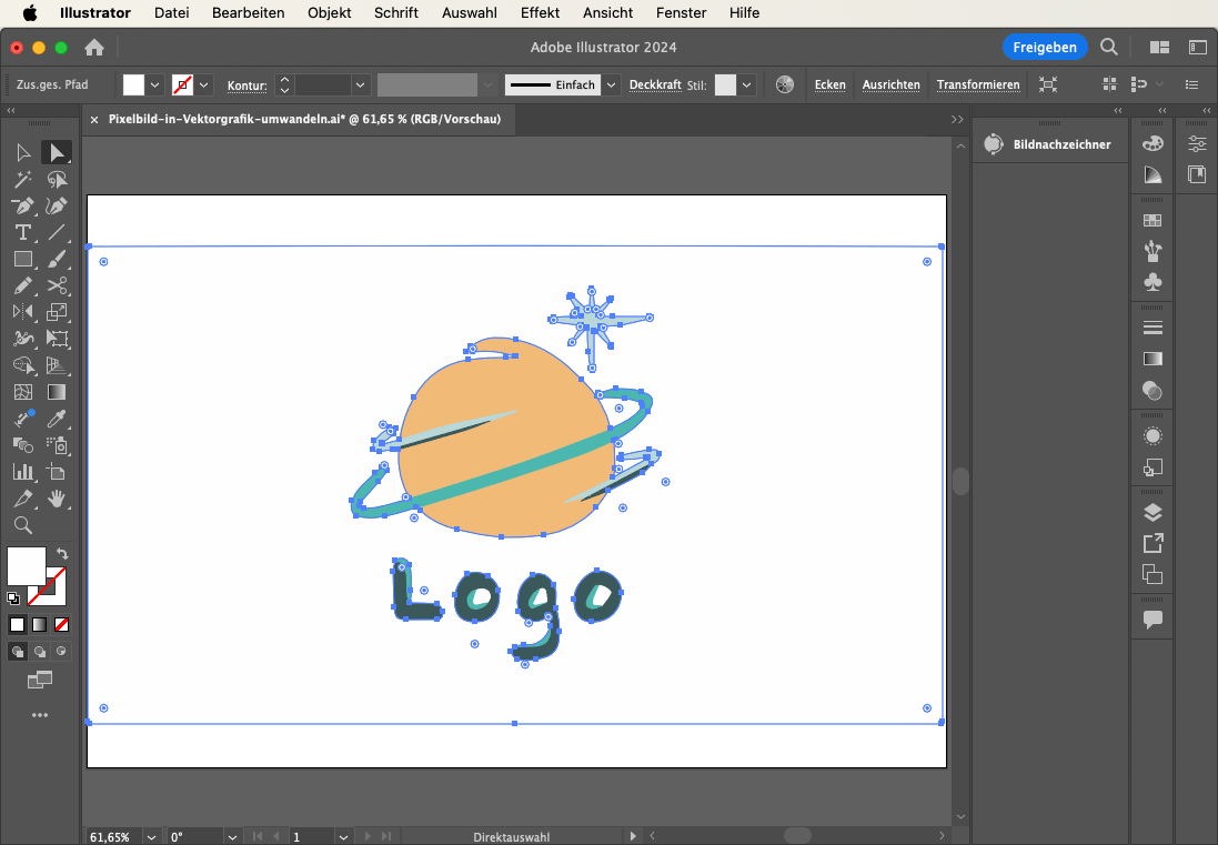Sie haben recht, mit Ihrer Herangehensweise funktioniert das Umwandeln von Pixelgrafiken in Vektoren genauso gut. Dennoch empfehlen wir für diesen Arbeitsschritt die Verwendung von Adobe Illustrator.