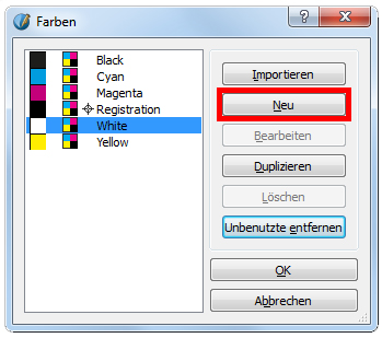 - Geben Sie im sich öffnenden Fenster der Farbe einen entsprechenden Namen wie im Datenblatt hinterlegt, also Lack, Sonderfarbe, etc.