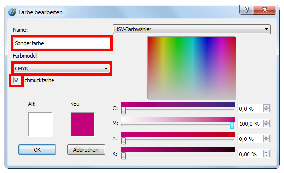 Und: Egal, wie die Farbe letztlich bei mir auf dem Bildschirm/im PDF dargestellt wird (im Beispiel oben ist es ja Magenta), gedruckt wird mit der Farbe, wie sie benannt ist (also bspw. HKS 60 K)?