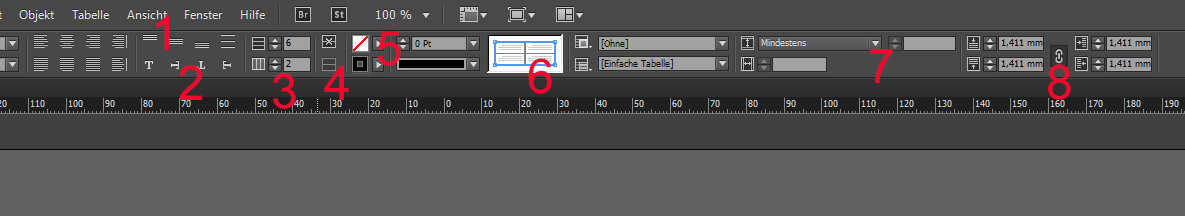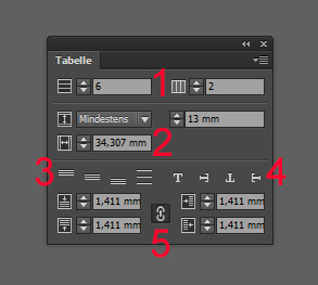 Wenn Sie mit dem Textwerkzeug in eine Zelle klicken, können Sie im Tabellenbedienfeld Folgendes anpassen und festlegen: