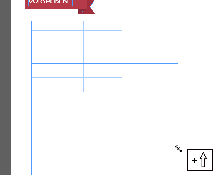 - Klicken Sie mit dem Textwerkzeug in eine Zelle, wird der Cursor an den Zellenrändern zu einem Doppelpfeil, der es Ihnen ermöglicht, Zeilen, Spalten oder die ganze Tabelle in eine andere Größe zu ziehen. Fassen Sie die Tabelle an einem äußeren Rand oder einer Ecke an und halten die Umschalttaste gedrückt, ändern sich alle Zeilen, Spalten oder die gesamte Tabelle proportional. Halten Sie beim Ziehen der untersten Zeile oder äußersten Spalte die Alt-Taste gedrückt, werden weitere Zeilen bzw. Spalten mit den gleichen Maßen wie die unterste bzw. äußerste hinzugefügt.