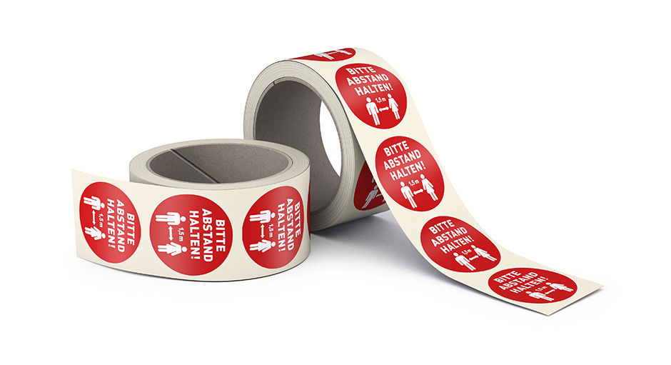 „Bitte halten Sie Abstand!“ Eine goldene Regel in Corona-Zeiten, die wortwörtlich Leben rettet. Ob an der Kasse, vor der Fleisch- oder Käsetheke: Mit Fußbodenaufklebern weisen Sie überall dort, wo sich tendenziell Menschenschlangen bilden, auf die vorschriftsmäßigen 1,5 m Abstand gegenüber anderen Personen hin.