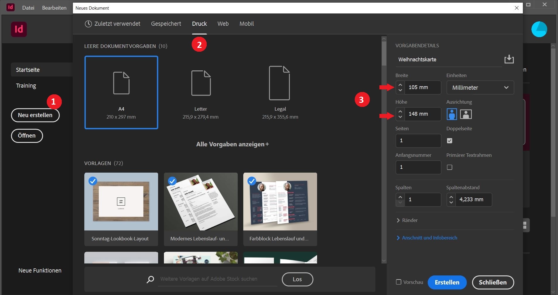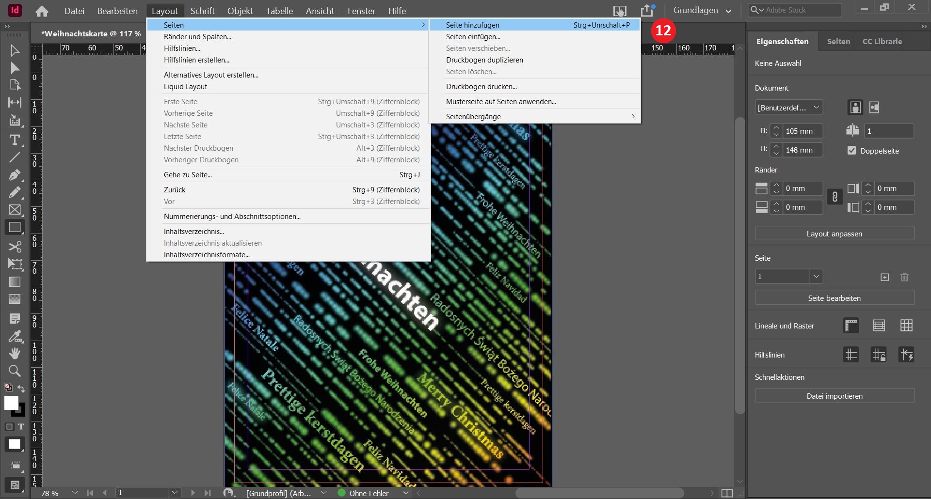 Weihnachtskarten als neues Dokument in InDesign anlegen