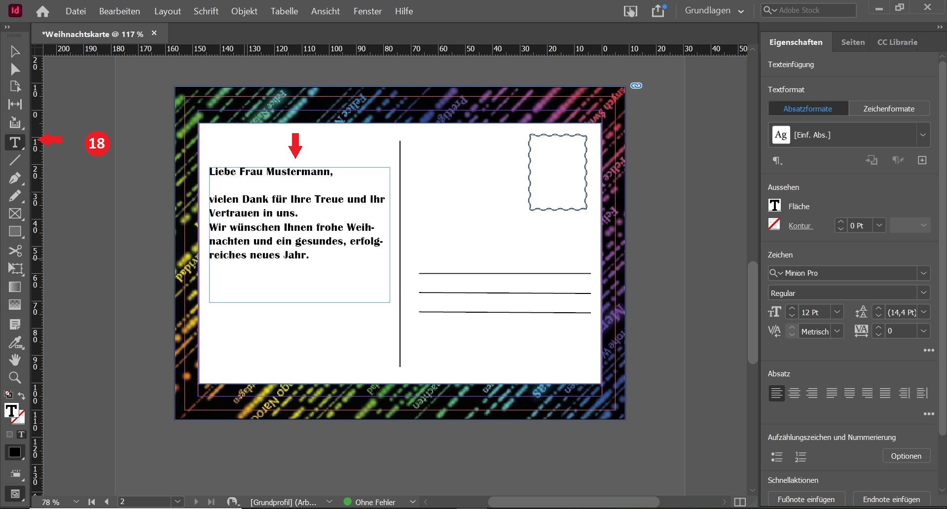 18. Nun fehlt nur noch Ihr persönlicher Weihnachtsgruß. Aktivieren Sie das Text-Werkzeug und tippen Sie einen individuellen Text in die aufgezogene Textbox ein.