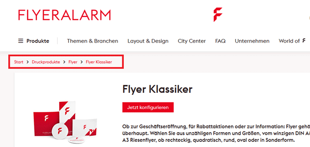 Tragen Sie dafür Sorge, dass der Nutzer sich so einfach wie möglich von der Startseite, zu Übersichts- und Detailseiten und wieder zurück navigieren kann, ohne sich zu „verlaufen“. Arbeiten Sie beispielsweise mit Navigationspfaden (sog. Breadcrumbs). Diese werden als Link meist am oberen Seitenrand angezeigt. Über sie können Besucher schnell wieder „zurückblättern“ zur vorherigen Seite.