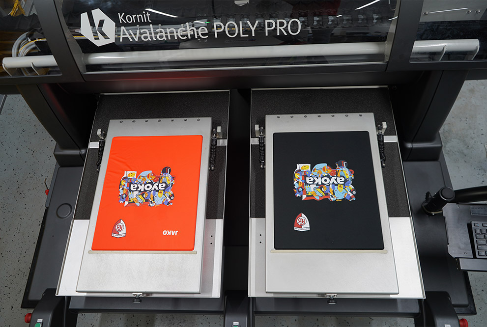 Beim Digital-Direktdruck wird Ihr Motiv – der Name lässt es ja bereits vermuten – ohne Umwege direkt von der Druckmaschine auf Trikots, Sportshirts und andere Textilien aufgebracht. Der zu bedruckende Stoff wird dafür in die Maschine eingespannt. Ein Schlitten mit dem Druckkopf fährt nun Millimeter für Millimeter über das Textil und sprüht Farbe auf. Anschliessend kommt das frisch bedruckte Jersey in einen Trocknungskanal und nach wenigen Augenblicken ist Ihr Motiv untrennbar mit dem Stoff verbunden.