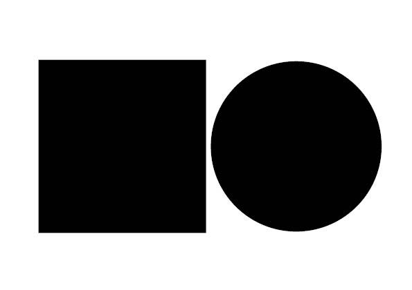 Wenn Sie nach dem Druckdatencheck einen Hinweis bekommen, dass Ihr Layout Registerfarbe enthält, sollten Sie diese in Ihrem Layoutprogramm entfernen. Im Folgenden erfahren Sie, wie Sie in InDesign Registerfarben innerhalb Ihrer Druckdaten finden und ersetzen. Dafür nutzen Sie den Preflight. Als Beispiel soll die hier zu sehende (natürlich stark vereinfachte) Grafik eines schwarzen Kreises und eines schwarzen Quadrats untersucht werden. Der Schwarzton der beiden Farben wirkt identisch, dennoch meldet der automatische Druckdatencheck von FLYERALARM beim Upload der Druckdaten einen Hinweis auf die Verwendung von Registerfarben.