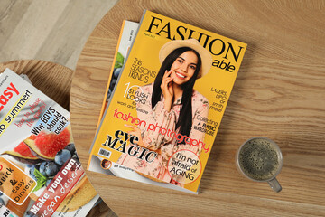 Et magasin er det engelske navn for et tidsskrift. Et magasin udkommer ofte med jævne mellemrum. Det kan være en gang om måneden, hvert kvartal, hvert halve år eller en gang om året. Baggrundshistorier, dybdegående interviews, fotoreportager og en tiltalende forside er elementer, man finder i et magasin. Et magasin indeholder også ofte betalte reklamer eller advertorials. Normalt har hver publikation et forskelligt indhold. Et magasin kan være informativt, underholdende eller inspirerende. Eller en kombination af det hele. Tænk på en årsberetning, et magasin til en kollegas afsked eller et magasin om rejser. En brochure har ofte til formål at informere læseren, f.eks. om virksomheden. Et andet formål med en brochure er at fremvise og sælge produkter og tjenester. I de fleste tilfælde er en brochure en engangspublikation.