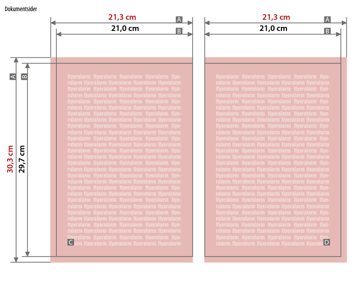 For eksempel, selvom en A5 flyer har dimensionerne 14,8 x 21 cm, skal trykfilen oprettes i det passende format med 15 x 21,2 cm. Hvorfor 1 mm mere på hver side? Årsagen til dette er puljetrykning, hvor mange job placeres på ét ark og adskilles med skæring efter tryk. Fordi de enkelte ordrer ligger tæt på hinanden, kræves er der en vis tolerance. Der skal jo ikke skæres noget af, men heller ingen hvid kant skal være synlig. For at undgå dette skal alle trykdata oprettes med en bleed. Afhængig af størrelsen på slutproduktet kan denne tilføjelse være 1 – 10 mm, og for nogle, såsom hardcover bøger, væsentligt mere. Dataformatet er derfor altid lidt større end slutformatet.