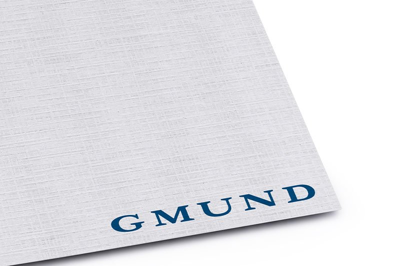 Le papier de lin est un papier naturel avec une structure uniforme de lin. Contrairement à ce que son nom laisse supposer, il n’est pas composé de fibres de lin. Il s’agit plutôt, du moins dans le cas du papier de lin Gmund, d’un papier à base de fibres fraîches de haute qualité, obtenu à partir d’un mélange de fibres végétales. Par exemple de l’eucalyptus, qui est même cultivé de manière durable et certifiée. En fait, la structure marquée du papier de lin ne pourrait pas être réalisée avec de véritables fibres de lin, car un tel papier ne serait pas bien gaufré en raison de la stabilité des fibres de lin.