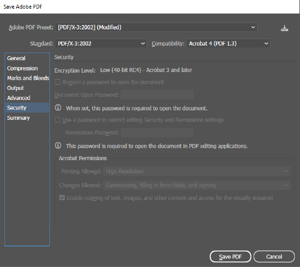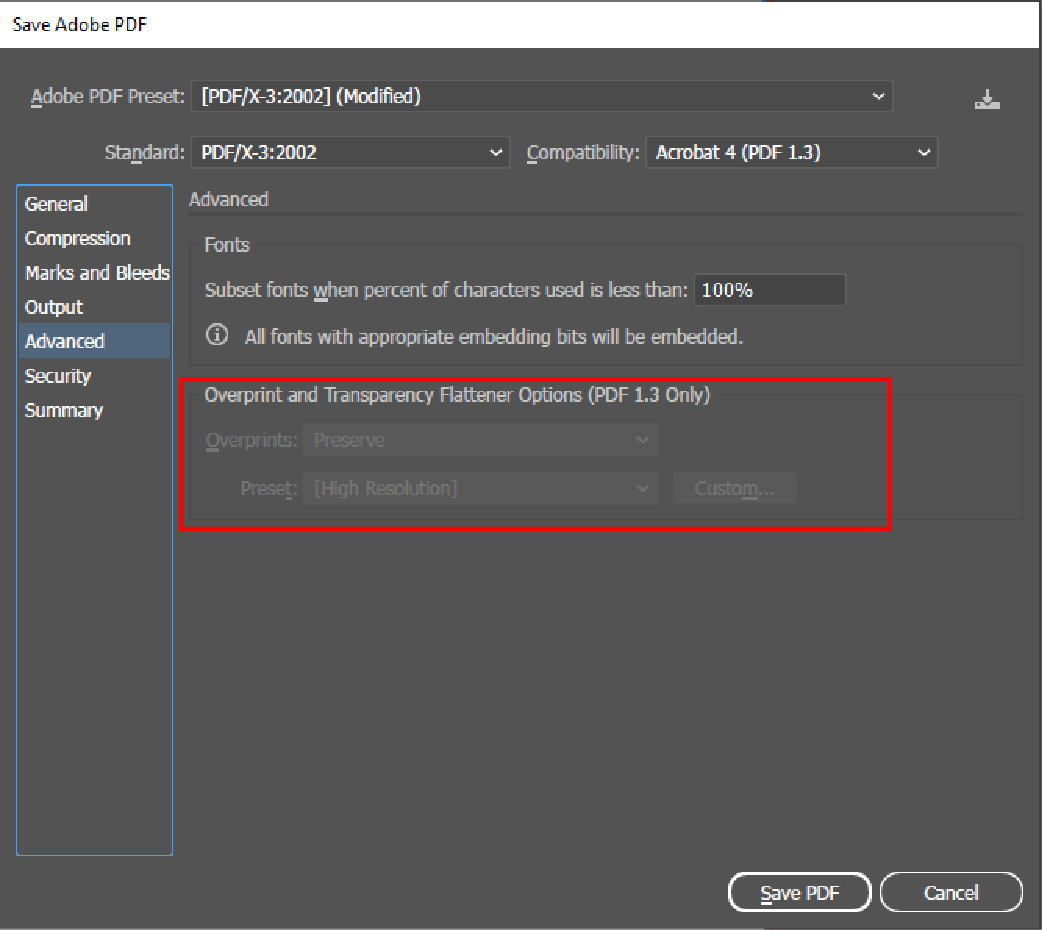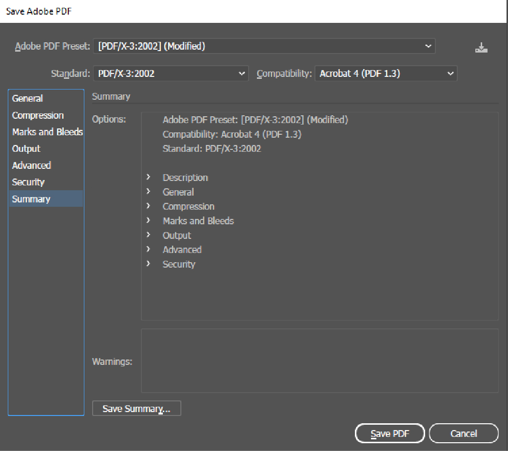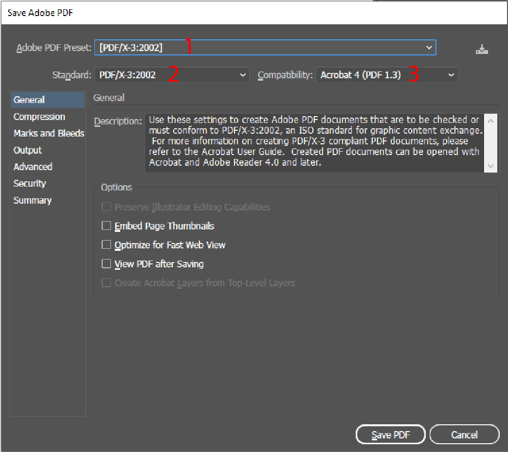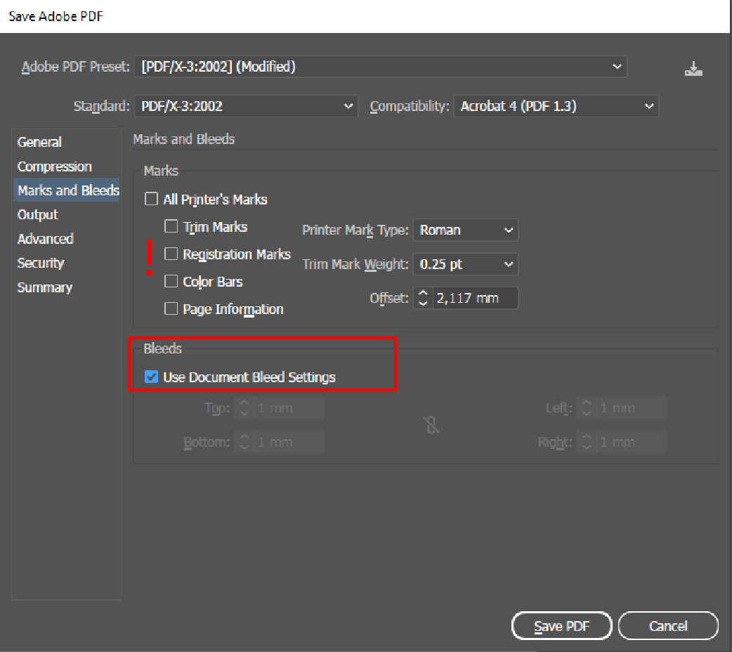 När du har gjort alla inställningar klickar du på “Spara PDF” så får du din tryckklar fil i Illustrator. Du kan ta reda på hur du kontrollerar detta igen innan du lämnar över det till skrivaren i vår artikel Kontrollera tryckfil med Adobe Acrobat Pro XI.